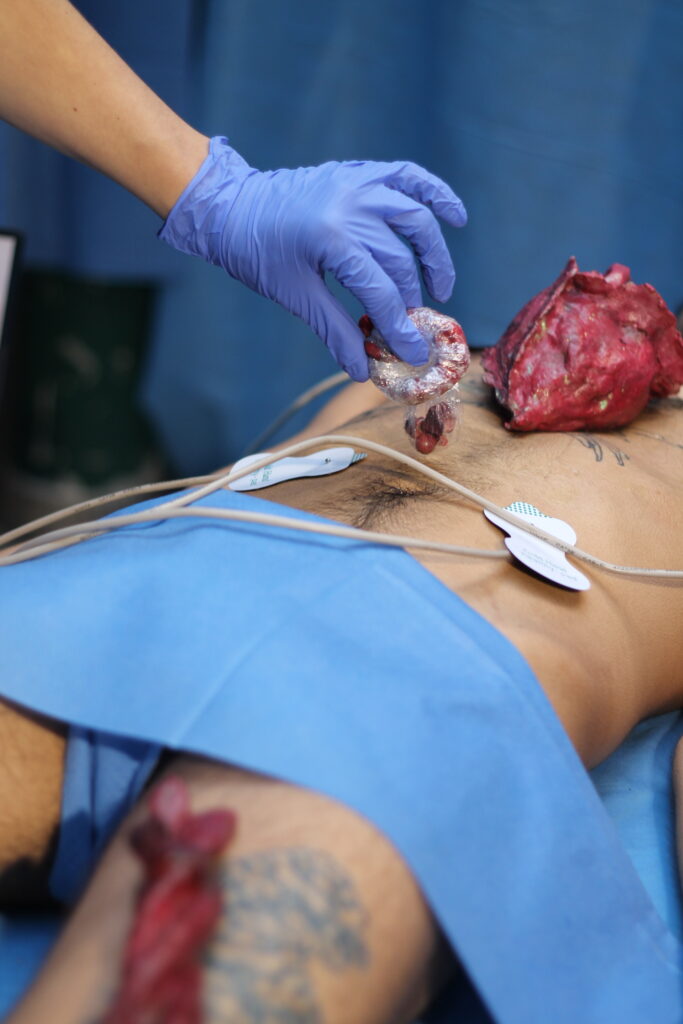 Let’s stay for a second longer with the word queerness. I remember stumbling upon a sentence in your performance description where you used the word queering in the context of revealing the inside of Gian’s body. On the one hand, this made immediate sense to me: you might be referring to the discrepancy between how a body’s appearance is classified within gender categories and how that might contradict a person’s own self-perception — what they feel inside.